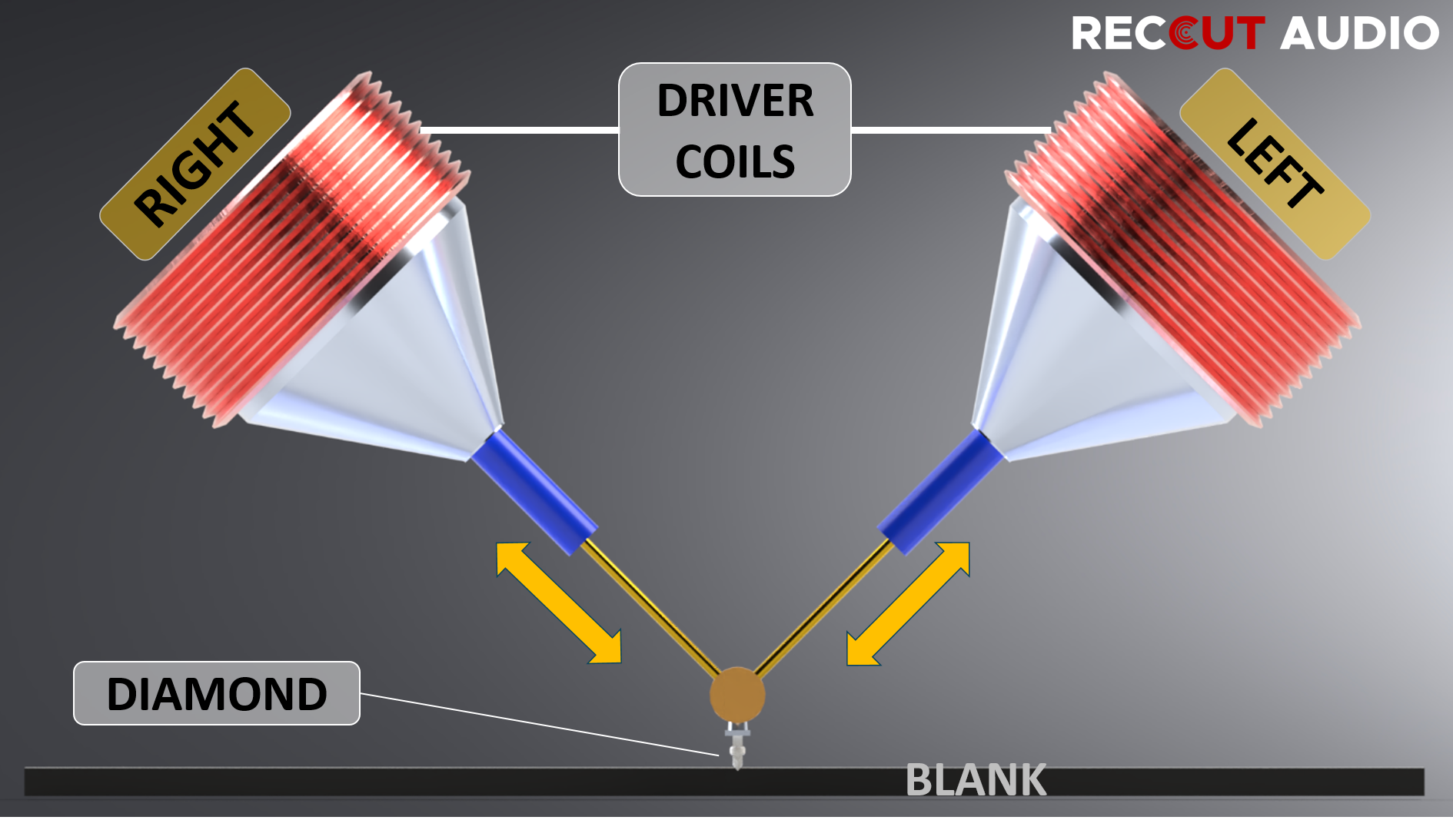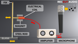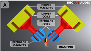Figure: How the 45/45-type stereophonic recording works using electromagnetic drive coils