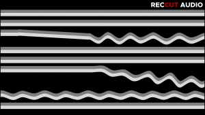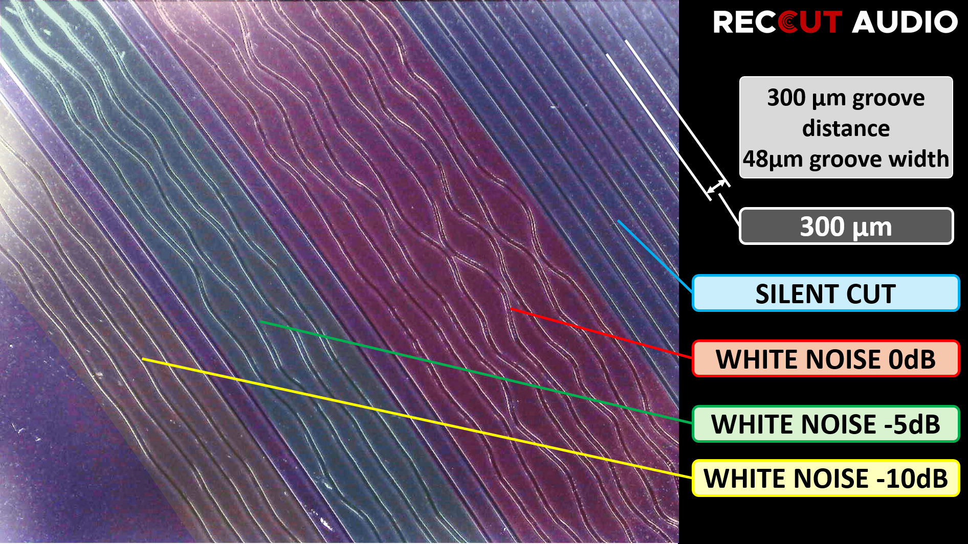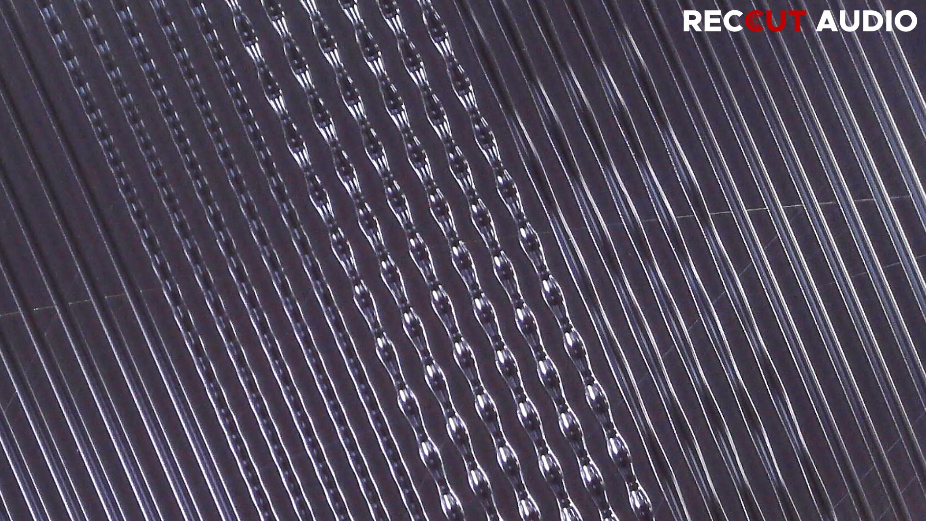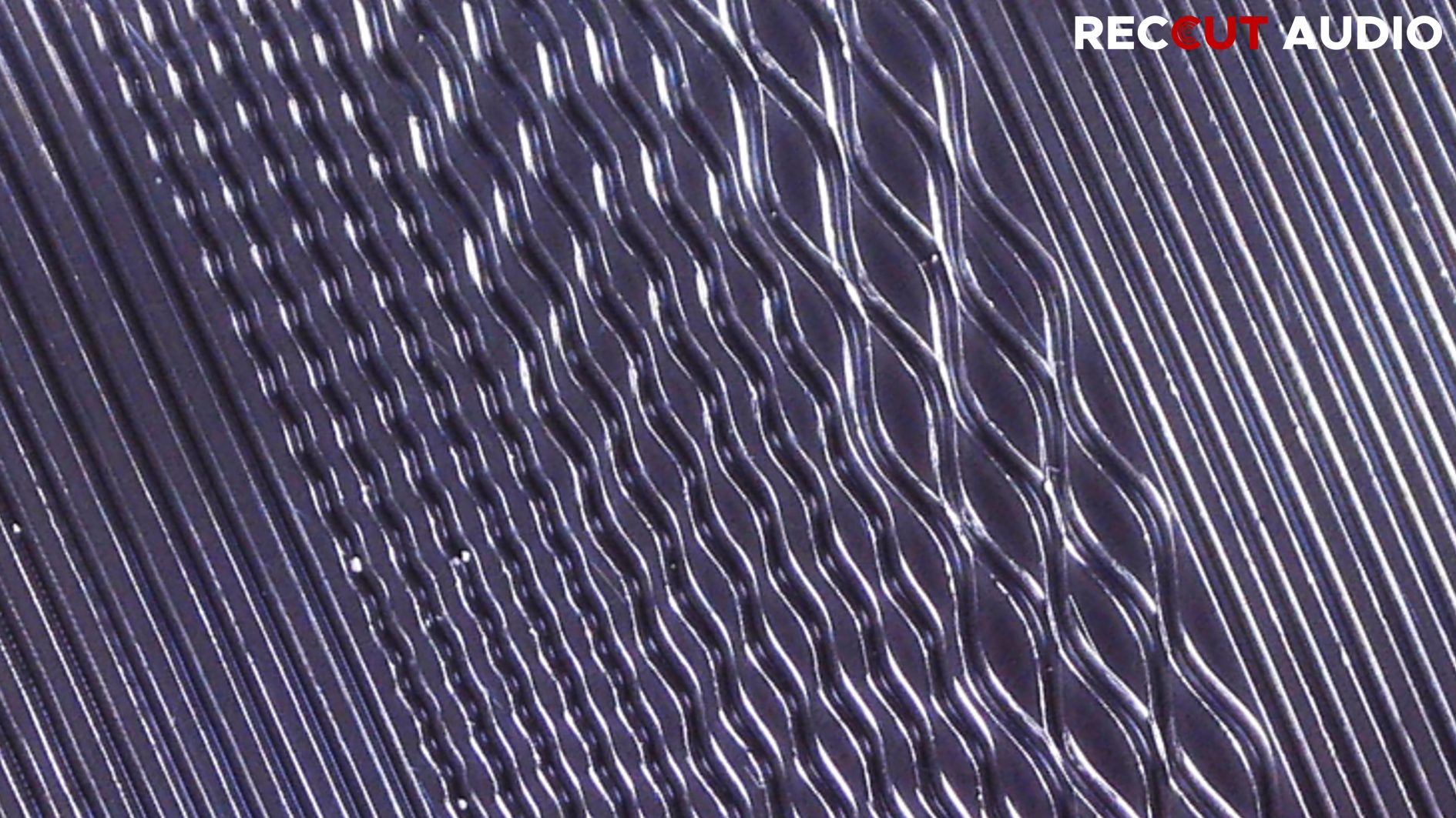 Example of lateral recording method on a vinyl record with different frequencies: