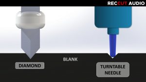 In the days of shellac records, the blanks (wax on tin plates) were also first processed with pointed steel styluses, tungsten needles, ruby or diamond styluses.