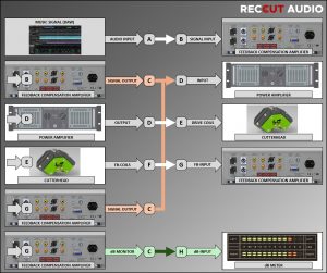 (C [Audio signal output at the feedback Amplifier] –> D [Audio signal input on the power amplifier]