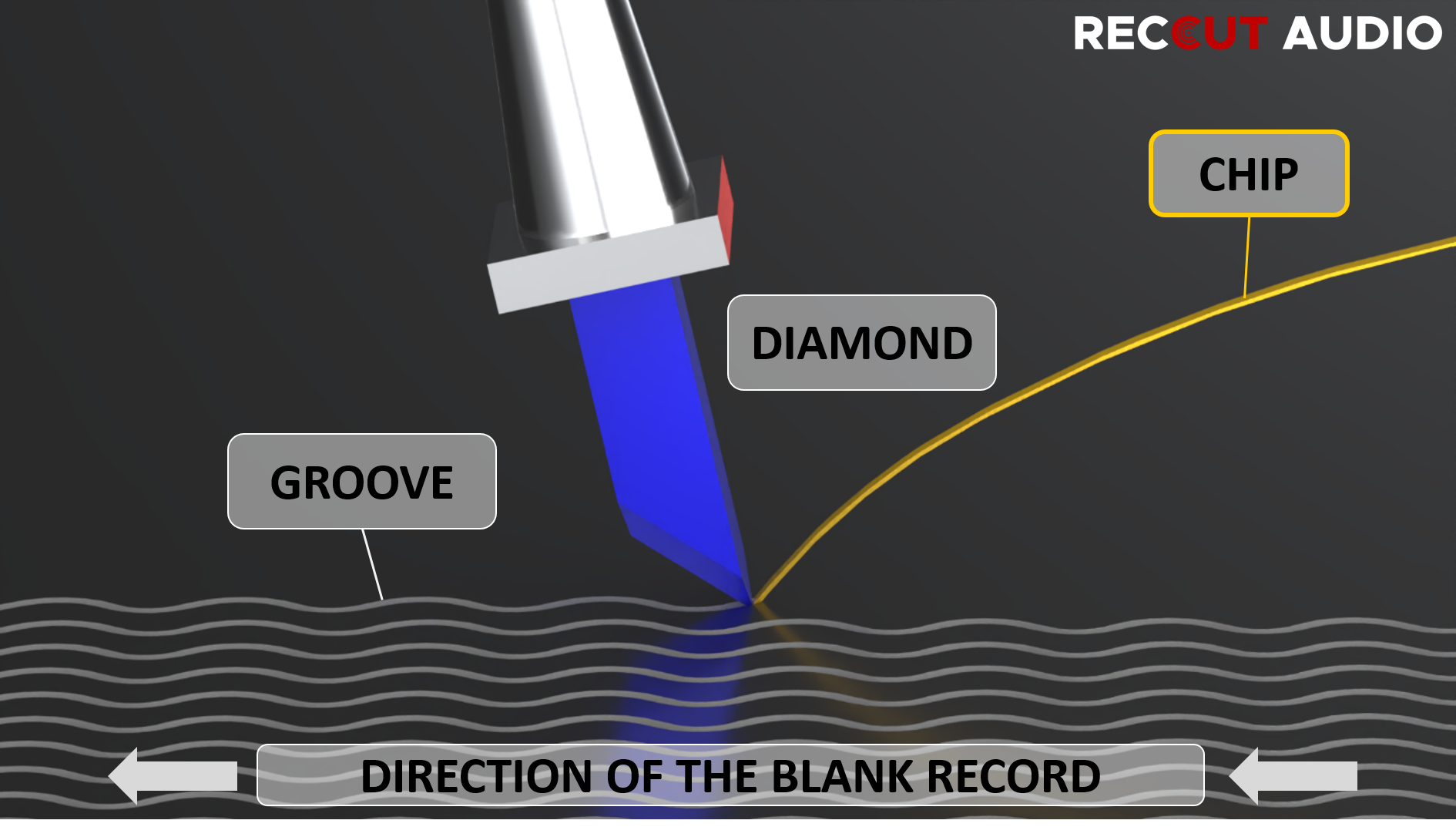 - Cutting stylus: Cuts grooves into the lacquer film